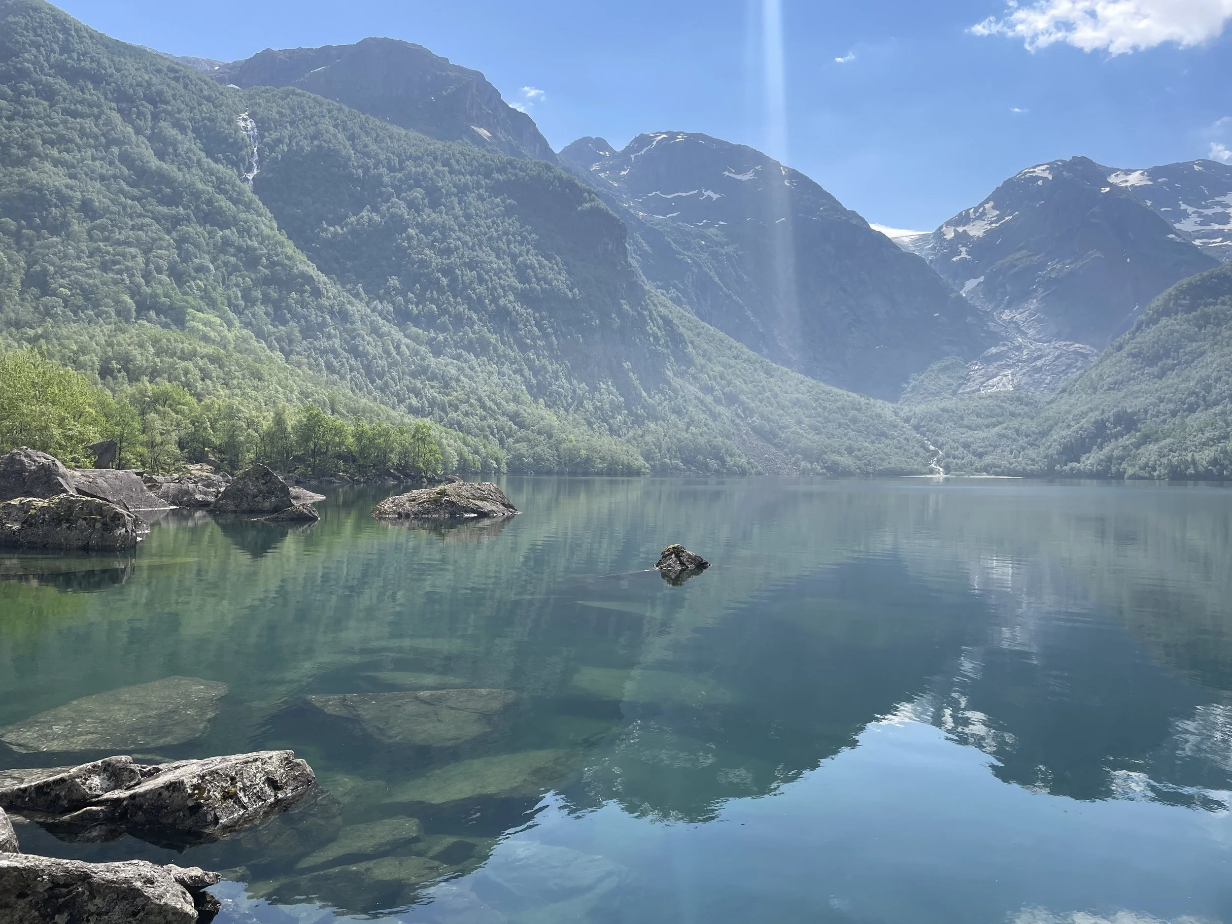 Bondhusvatnet is a stunning lake, close to the gleaser Folgefonn in the Folgefonna National Park. Surrounded by towering cliffs and vibrant greenery, it offers breathtaking views and a peaceful escape for hikers and nature lovers.