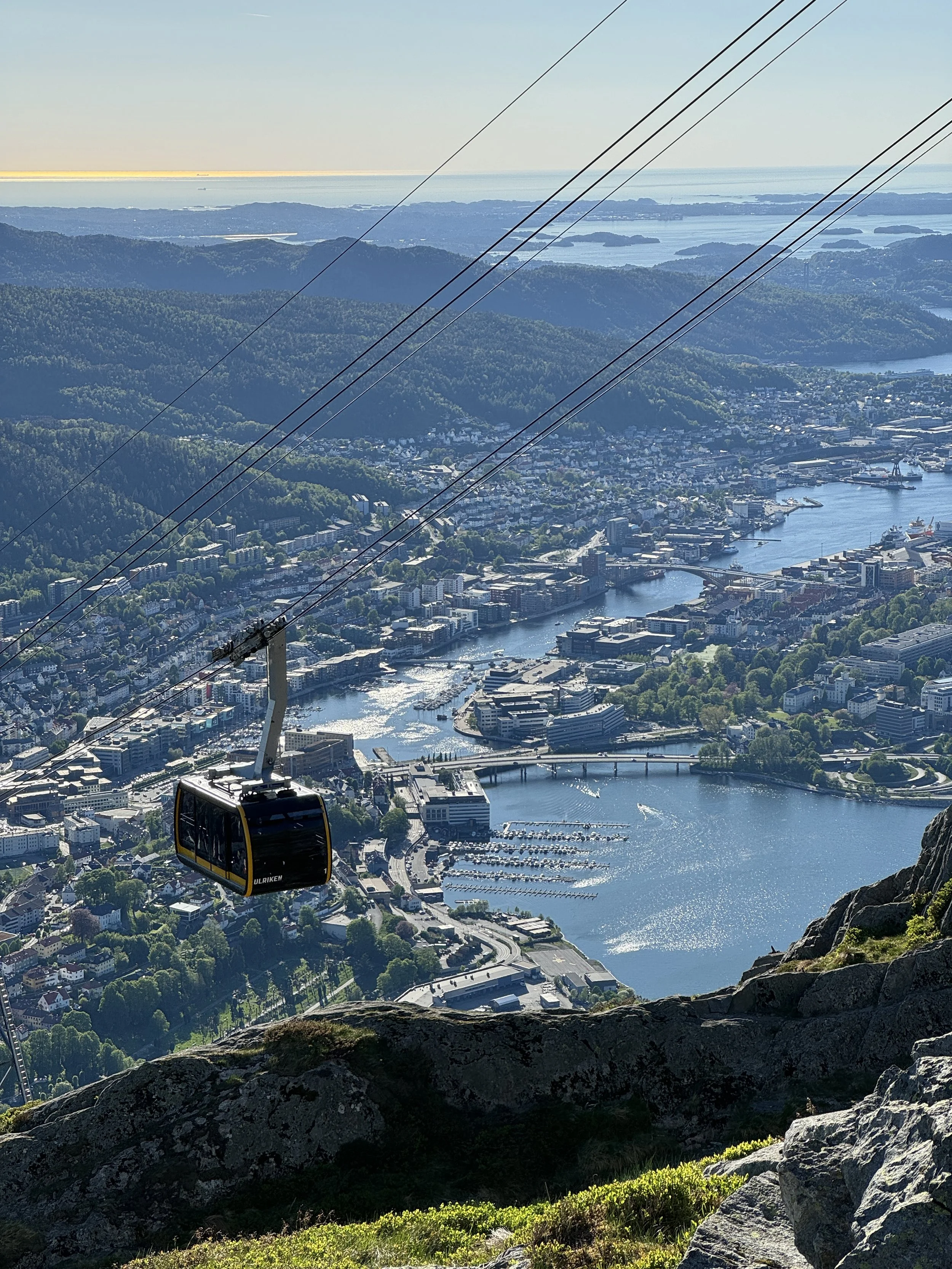 Ulriken is the highest mountain surrounding Bergen. This is a popular choice for hikers, both locals and visitors. It’s also the start of the popular trail, “Vidden,” a hike that connects Ulriken and Fløyen. From the top of Ulriken, you have an amazing view of Bergen, not only the city but also the surrounding neighborhoods. At the top, you also find a cozy café offering panoramic views. Lucky for us, we can take a gondol to the top.